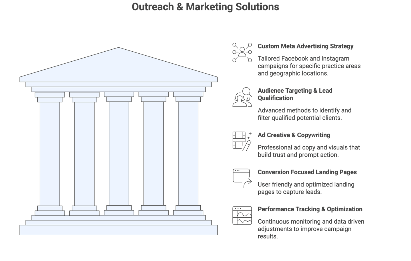 At Outreach & Marketing Solutions, we use Meta’s platform to connect your firm directly with potential clients who are actively engaging with the world around them not just those typing into a search bar.